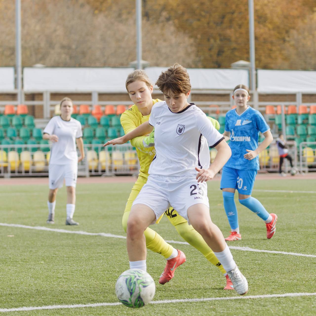 Казанский «Рубин» принимал на стадионе «Трудовые резервы» петербургский «Зенит» в 17-м туре Юношеской футбольной лиги среди девушек до 16 лет.